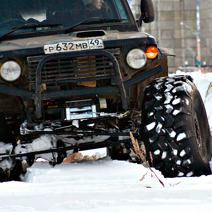 но зимою не так всё прекрасно,резина совсем не для минус20,замерзает и не плющится совсем.Но если некто по позывному"снегурочка"даст на поездку свои новые 38-е свампера то я думаю уазка поедет немножечко получше. Корчишься? Забыл уже, как без хорошей резины обходился? Привык первым летать? Может пора уже лебёдку и для себя размотать? А то только друзей таскаешь , да домой поломатых привозишь! -------------------- |
