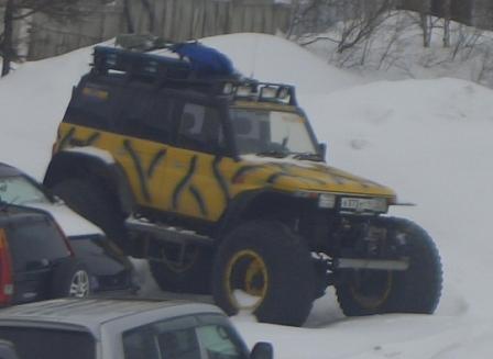 Вот прихожу утром на стоянку... а рядом с моей "белухой" стоит "чёрный скот" - Сафарик-пятидверыш с высокой крышей, на 35-MT и с белыми (!) дисками. Как-типа хвастается тапочками... (я давно мечтал о таком подарке Сурфу).