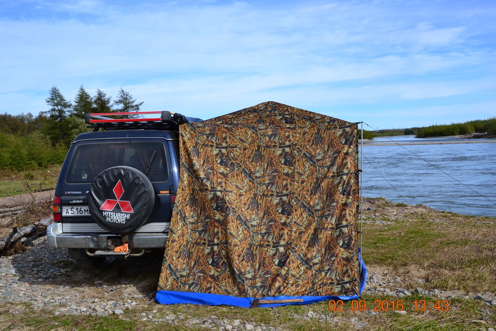 мы использовали как предбанник в "желище" все вещи лежали под навесом и не на солнце или дожде, и от лишних глаз скрытые. вечером от комаров закрылись, сидим чаи гоняем. Штука удобная, особенно в части разобрал-собрал, пару минут и готово. и место в багажнике не занимает. -------------------- куплю Ниву, недорого. 892Ч69287О5