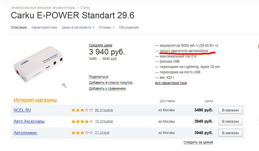 Цитата Бла. бла ..,. бла, бла. бла... Никто ведь и не предлагает данный девайс в качестве замены штатному аккумулятору автомобиля, это всего лишь устройство, предназначенное помочь в определённой ситуации... К тому же, некоторые из них являются ещё и дополнительным внешним аккумулятором для различных гаджетов... Что же касается неверия - не забываем о технологиях, которые не стоят на месте... Кстати, недавно отдал на работе напарникам аккумулятор четырёхвольтовый от китайского фонарика, купленный ещё в 2008!!! году (он у меня просто не при делах, фонарика нет уже) - его благополучно зарядили, и целую неделю пытались посадить пятивольтовым моторчиком... Ёмкость моего "Атласа" перед заменой составляла 3,6А - он в качестве штатного прекрасно справлялся со своими обязанностями при летних температурах... И про запуск авто с дохлым аккумом, с помощью аккумулятора от компьютерного бесперебойника - давно уже не сказки... По поводу "девайса" - на работе, как минимум, двое уже приобрели подобное, и отзывы - положительные...(про конкретные модели - не скажу, не запоминал) -------------------- И только когда жизнь его стала клониться к закату, человек понял главную истину. Жизнь не имеет смысла. Смысл – это жёсткие рамки, в которые мы загоняем друг друга. Говорим – смысл в деньгах. Говорим – смысл в любви. Говорим – смысл в вере. Но всё это – лишь рамки. В жизни нет смысла – и это её высший смысл и высшая ценность. В жизни нет финала, к которому ты обязан прийти – и это важнее тысячи придуманных смыслов. (С)