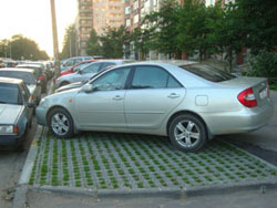 видел ЗАМЕЧАТЕЛЬНОЕ решение в москве: в землю с газоном вдавливают пластмасовые решетки зеленого цвета(чтоб с травой сливалось) с ячеей примерно 5 см. но при этом решетка на 2-3 см выше земли. газон растет сквозь ячеи а машины заезжают на решетку (фактически) . тоесть ставят на газон но он всегда зеленый Вот это было бы превосходно, что называется и волки сыты и овцы целы. Интересно, а это возможно в Магадане?-------------------- ☺