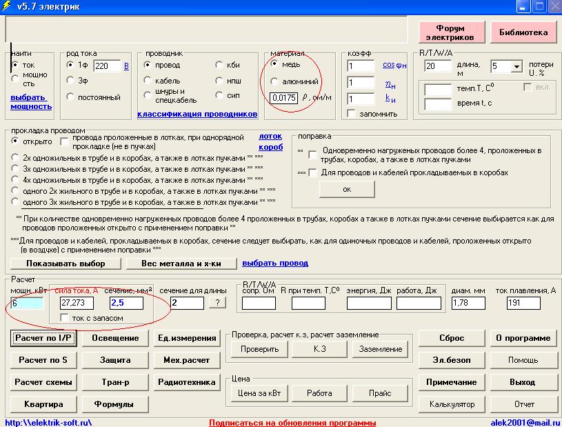 Господа электрики!!! Подскажите формулку для расчёта тока в зависимости от сечения провода. И если не трудно, то сразу же удельные сопротивления меди и аллюминия.