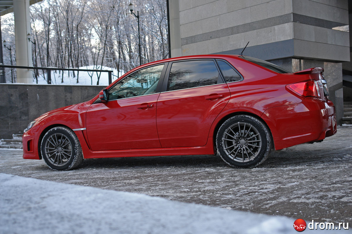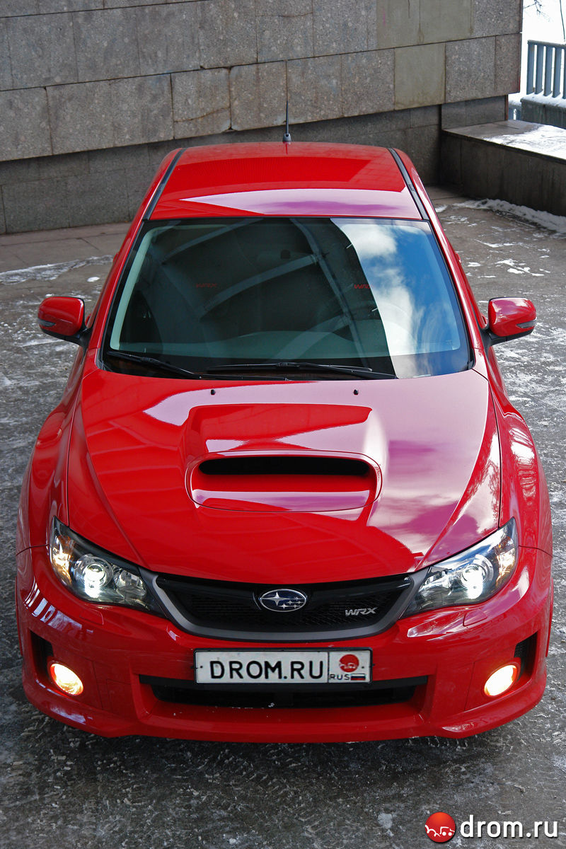 Тест-драйв обновленной Subaru Impreza WRX от Drom.ru. В хорошей форме 24.01.2011 | 15555 просмотров Вам нравится этот автомобиль? Да 1443 (88%) Нет 203 (12%) Источник: Drom.ru Автор: Леонтий Тютелев Фото: автора Поздней осенью 2010-го на полигоне в «Мячково» состоялась российская презентация обновленных Subaru Impreza WRX и WRX STI, о чем мы рассказывали. Во время короткого тест-драйва все наше внимание было нацелено, конечно же, на самую злую версию, а вот на WRX времени не осталось, хотя метаморфозы с машиной произошли весьма серьезные, и их хотелось оценить. На обновление WRX возлагались большие надежды. Дорестайлинговая версия в «узком» кузове во время первого теста произвела на нас если не удручающее, то весьма посредственное впечатление. Мягкая, с комфортабельной подвеской, хоть и мощным, но весьма скучным мотором. Абсолютно лишенная харизмы внешне (если не считать за ее проявление ноздрю на капоте). Помнится, обидно тогда стало за славную линейку средне-заряженных Импрез. Хорошо, что производитель свою ошибку понял и во время плановых обновлений постепенно привел машину к привычному знаменателю. Исправили именно то, что было нужно. Как в былые времена, WRX теперь делит с STI широкие кузова — это седан и хэтч. Ширина увеличилась на 5 см, в то время как передняя колея на 3,5 см, а задняя — на 4. Машина упирается в землю шинами на 17-дюймовых дисках, теперь покрышки стали шире на 1 см. Кузов с расширенными крыльями, безусловно, сделал облик WRX более привлекательным и агрессивным. В версии седан машина отличается от старшей спортивной сестры только маленьким спойлером вместо «этажерного» антикрыла. Ну, и колесики поменьше. Зато у WRX тоже есть эффектный разведенный по сторонам выхлоп со сдвоенными патрубками. Прихорошилась машинка, обновление пошло на пользу. Хотя на вещи можно посмотреть и с другой точки зрения — WRX вернулась к тому, какой была раньше. Настройки подвески пересмотрели еще во время первого обновления, которое датируется 2008-м годом. Новые пружины и перекалиброванные амортизаторы ужесточили ходовую примерно на треть. Тогда же японцы поколдовали над мотором. Мощность увеличили на 35 л.с. — до 265 «лошадей». Получил солидную прибавку и крутящий момент — если раньше было 320 Нм, то сейчас 343. Причем двигатель стал ориентирован на высокие обороты, максимальная мощность достигается на 6 000 об/мин (было 5 200), момент — на 4 000 об/мин (было 2 800). Тем не менее, время разгона до 100 км/час по паспорту увеличилось на 0,2 сек и составляет теперь ровно 6 секунд. Кстати, ровно столько же требуется на это упражнение и «автоматической» STI. А вот в салоне изменений не обнаруживается. Везде жесткий пластик. Из спортивных атрибутов только трехспицевый руль, спортивные кресла с логотипом WRX да педали с алюминиевыми накладками. Это аскетизм и продиктованная бюджетом скромность импрезовских спортивных салонов, какими мы всегда их знали. Некоторые вещи с годами не меняются. Зато двигатель заводится с кнопочки, а ключ не надо доставать из кармана! Хорошо хоть, что кнопка по-прежнему слева — дань автоспорту! 2,5-литровый оппозит просыпается с знакомым металлическим рыком. Салон наполняется приятной вибрацией. Вот с ней, мне кажется, бороться не стоит. Есть звук, а есть ощущения от мотора. То, как работает оппозитник на холостых, немного сотрясая салон, — приятно. Это его характерная черта, поэтому нужно воспринима