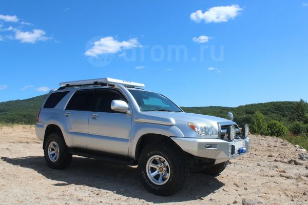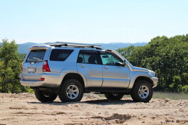 Вот та самая фотка с дрома. Но при съезде задним ходом, скажем, с парома на Янской переправе могут возникнуть значительные сложности, если машина не лифтованная. Так что лучше уж фаркоп с подножками. Видел в Магадане один сурфик с ним - достойно выглядит.