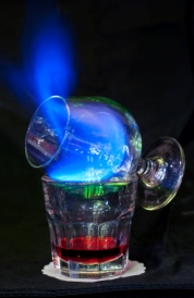 КОКТЕЙЛЬ — английское cocktail, напиток из смеси различных ликероводочных изделий, виноградных вин, коньяка, рома, соков, фруктов, ягод, сливок, молока, мороженого... Коктейли — это смешанные напитки, которые содержат (как правило) не более 5 ингредиентов, включая все добавочные, используемые в очень малых количествах, такие как соль, специи, биттеры и т. д. Состав коктейлей может быть самый разный. Большинство коктейлей готовится с помощью льда, поэтому ему стоит уделить особое внимание. Для приготовления льда лучше использовать слабо минерализованную или просто очищенную воду. Она должна быть совершенно прозрачной и без привкуса, прозрачной и желательно без пузырьков. Можно использовать и дистиллированную воду. Коктейли со льдом обычно подаются в стаканах тумблер, олд фэшн или хайбол. Коктейли, которые готовят в шейкере и подают без льда, наливают в бокал с ножкой. Часто для коктейлей используется сахарный сироп, который можно приготовить самостоятельно, растворив 1 кг сахара в 1 л кипящей воды. Готовый сахарный сироп лучше хранить в холодильнике. В предлагаемых рецептах количество ингредиентов указано в частях порции, иногда — в чайных ложках или дэшах. 1 дэш = 1,5 мл, или 2–3 капли. ГЛИНТВЕЙН — от немецкого gluhender Wein, горячее вино, горячий напиток, обычно из красного вина с сахаром и специями. Очень приятно зимой КАЛЬВАДОС — яблочная водка! КРЮШОН — от французского cruchon, в переводе — кувшинчик, смесь белого столового вина с ромом или коньяком, в которую добавляют свежие фрукты, сахар, иногда шампанское. ГРОГ — английское grog, горячий напиток, приготовленный из рома или коньяка и горячей воды с сахаром. ПУНШ — английское punch, горячий или охлаждённый напиток, приготовленный нагреванием рома с водой, сахаром, вином, фруктовым соком и пряностями. ------------------------------------------- ..... кстати многие не знают в чём разница фужеров рюмок и бокалов .... что куда наливается и что с чем пьётся ....... 1 рюмка для ликера 2 бокал для хереса 3 бокал для шампанского 4 бокал для минеральной воды 5 бокал для пива 6 бокал для розового вина 7 бокал для шампанского 8 бокал для бургунского вина 9 рюмка лафитная для красного столового вина 10 рюмка для белого столового вина 11 рюмка рейнвейная (светлозеленая) 12 бокал для десертного вина 13 коньячная рюмка 14 стопка для виски 15 стопка для водки 16 фужер для минеральной или фруктовой воды 17 бокал для шампанского 18 рюмка для ликера 19 рюмка для мартини 20 рюмка для коктейля 21 бокал для грога 22 бокал для чая или пунша ------------------------------------------------------ NARCO («НАРКО») Классификация: shot drink Крепость: 30% Метод приготовления: build Метод подачи: extreme и rapido Посуда подачи: олд фейшенд (old fashioned) и снифтер (brandy glass) Состав 20 мл сиропа Grenadine (либо другого сиропа) 40 мл абсента 50 мл спрайта/тоника/шампанского Приготовление Сироп и спрайт налить в бокал old fashioned, абсент в brandy glass. Положить brandy glass на old fashioned круглым боком. Поджечь абсент с помощью спички или зубочистки, нагреть в течение 7-10 секунд, постоянно поворачивая brandy glass вокруг своей оси. Аккуратно перелить горящий абсент в old fashioned и накрыть перевёрнутым снифтером. В течение нескольких секунд собрать пары в brandy glass. Вы сможете увидеть, как ароматная дымка поднимается из олд фейшенда в снифтер. Аккуратно снять снифтер, закрепив снизу костером (картонная подставка под бокал). Накрыв салфетками, ударить old fashioned об стойку (ка