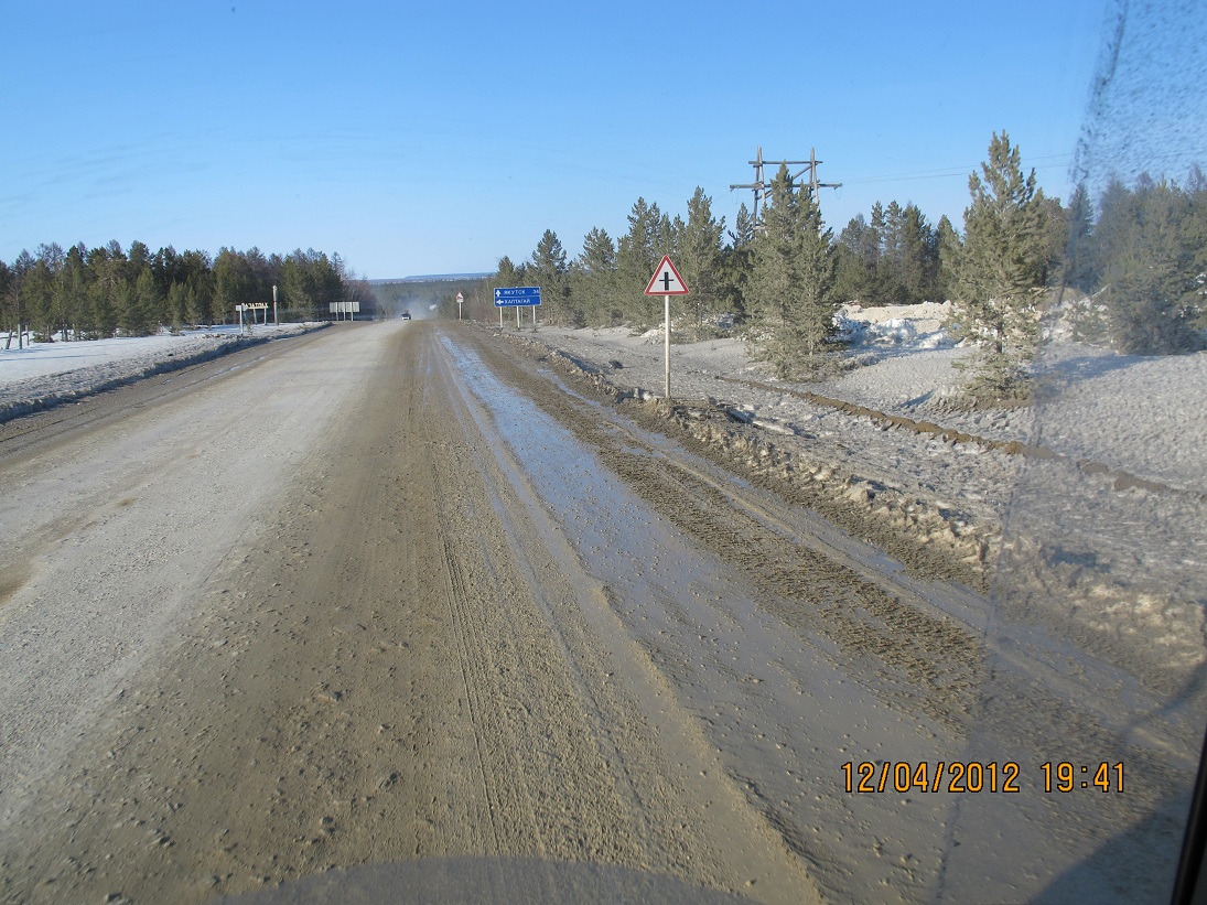 На фото и видео не передашь всех неровностей дороги Якутии Весной ............)))))) в некоторых местах где ведутся ремонтные работы даже камазы передвигаются со скоростью 5 км.в час.скину фотки))) А с Москвы до Бурятии при желании и возможности можно очень быстро доехать,)если по пути не живут друзья знакомые и родственники .....))) Сообщение отредактировал Goba - 18.4.2012, 0:34 Спасибо! — STARый