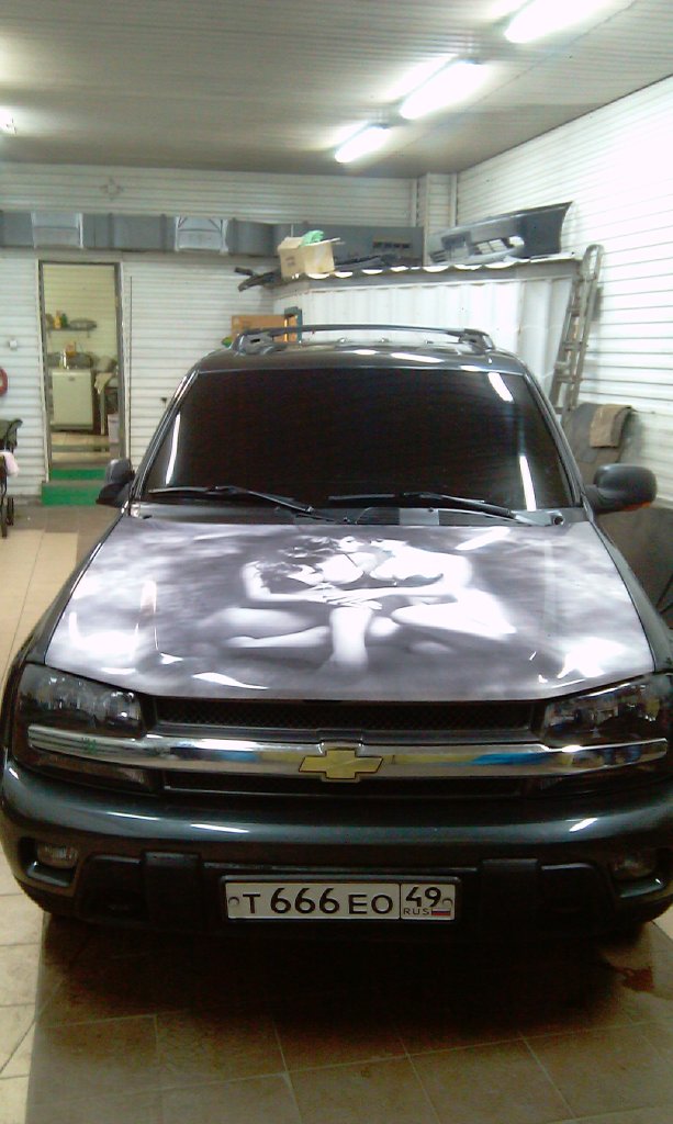 Кто видел мультик про тачку Молнию Маквин? =) такой вот вариант стилизации особого типа внедорожника, где использовались плёнки высшей категории сроком службы до 10 лет. Общая стоимость работы - 7 000 рублей! По всем правилам в конце работы весь контур винила по обеим сторонам был обработан бесцветным лаком, препятствующим попаданию влаги под края плёнки. Уменьшено до 91%ссылка доступна только зарегистрированным1024 x 768 (105.93 килобайт) Уменьшено до 91%ссылка доступна только зарегистрированным1024 x 768 (94.66 килобайт) Можно было бы использовать для обрамления жёлтый светоотражающий материал, но стоило бы это уже около 11 000 ру Моя тачка! Все сделано на совесть, пока не отклеилась! Вот только для капота время так и не нашли... Спасибо! — Vinyl Deluxe
