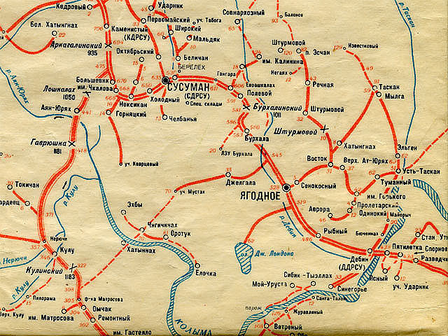 Летом будет интересен данный маршрут, но не хотелось бы делать крюк через Мылгу. Карту прилагаю. Через Мылгу на Хатыннах, похоже, дорога совсем заросла. Хотелось бы и мне узнать современное ее состояние, можно ли еще на 2х колесах там прошкрябаться. От Усть-Таскана на на Ягодное - вполне проезжаемая дорога, предприятия же там во всю работают.