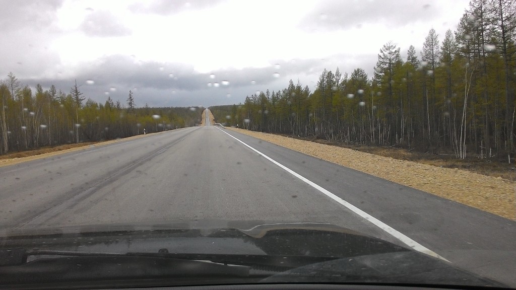 Родственники дали в дорогу целый пакет разного провианта и термос с чаем, что было не обязательно, но все равно пригодилось. О важных вещах типа зубной щетки, комплекта сменного белья и флешки с музыкой даже и говорить не нужно, само собой разумеется. Все четырежды перепроверив (видимо 4 мое счастливое число, слишком уж часто всего по 4), я отправился в гараж к друзьям отмечать мой отъезд при помощи коньяка. Вообще, кому бы я не говорил о своих намерениях проехать страну на своем автомобиле, все на меня, в лучшем случае, смотрели как на дурачка. Лишь пару человек не усомнились в моих планах. Ну что ж, утритесь, сомневающиеся — путь был успешно завершен! Но обо всем по порядку. Дальше будет очень много букв, надеюсь будет нескучно. Одометр от старта, пробег вообще смешной День первый. Вперед на Север. 25 мая 2015. Магадан — Сусуман Пройдено 630 км. Всего — 630 км. План выехать в 6 утра с треском провалился — я проспал, слишком уж хорошо проводили. На утренний чай и общий сбор ушло полчаса. Выехал в 8 утра по Магаданскому времени. Компанию мне составило легкое похмелье, после вечеринки-провожалки. Первая заправка состоялась еще в Магадане в день перед выездом — на 2000р получился полный бак, а что не влезло в бак залил канистры. Долгая дорога до Якутска Так как ехал я в первый раз, а до этого дальше двухсот километров от города вообще никогда не выезжал, я слегка переживал по поводу предстоящего пути, к тому же ехал я один и среди своих земляков выдвинулся самый первый. Первые 100-120 км были знакомыми и пройти их не составило труда, хорошая асфальтовая дорога закончилась за поселком Карамкен, там асфальт стал плыть и обрастать ямами, а ближе к поселку Атка и вовсе закончился. Через 200 км от Магадана стоит поселок Атка, выглядит он довольно мрачно, но там еще живут люди. Там же я первый раз заправился. Дальше меня ожидала легкая тряска километров 20, потом дорога стала ровной, а на 310км меня ждал сюрприз — 15 километров нового ровного асфальта возле моста через реку Нямичан. Потом очень ровная грунтовка. В нескольких километрах от п.Атки. Следующий поселок был Оротукан (400км от Магадана), там же и следующая заправка. Топливо стало стремительно дорожать. В Оротукане 92ой бензин стоит на 10 рублей дороже чем в Магадане — 50.40р. Так как в области, да и вообще до южной Якутии, заправки попадаются не часто, старался по возможности везде заправляться до полного бака на каждой попадавшейся мне АЗС. Залил 18 литров, сделал пару кадров и двинул дальше. Оротукан. Он такой весь Через чуть больше чем 100км следующий поселок - Ягодное. Этот поселок считается одним из наиболее живых поселков, и он производит такое впечатление. Большинство домов покрашены в яркие цвета, по улицам ходят люди. Там есть и АЗС, но заправляться в Ягодном я не стал, потому как наверняка знал, что до следующей заправки, а так же места моего первого ночлега, осталось совсем немного. По фото не очень это видно, но выглядит поселок очень неплохо Первую остановку было решено сделать в единственном в магаданской области городе (кроме Магадана) — Сусумане. Время уже было почти семь вечера, до следующего населенного пункта, Усть-Неры, которая уже в Якутии, около 400км по совершенно неизвестной мне дороге. Путешественник я неопытный, потому решил отдохнуть, а в 6 утра в дорогу. В Сусумане живет около 5000 человек и наверняка там