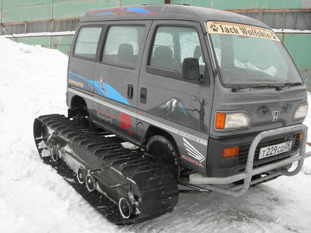 большую часть года снежные зимы,а гусеницы наиболее подходят для передвижения по снегу. На сегодняшний день существуют два варианта - гусеничные модули, которые ставятся вместо колес(маттраки и велтраки), и гусеничная платформа. Как было отмечено, у каждого варианта есть свои плюсы и минусы. Маттраки- дорого, причем цена на мой взгляд слишком дорогая для подобного изделия.Зато можно заказать и купить. Платформа - по всем критериям должна быть лучше, только еще надо найти где купить и хз какая цена. Хотя были отзывы, что есть фирма в Японии, которая делает эти платформы, но в инете не нашел.В принципе можно узнать через наше торгпредство.Помню, была уже тема про эти платформы, я там скидывал тоже фотографии и ссылки, не могу сейчас найти. PaWELL писал выше про минусы платформ- 1.- вес данной конструкции. 2. - не возможность транспортировки данной приблуды с помощью авто для которого она предназначена. Только на больших грузовиках. 3. - как только ты залез машиной на платформу и подключился, то тебя можно сразу подтянуть за а). отсутствие разрешение на переоборудование автомобиля, б). отсутствие прав на управление гусеничной техникой. Мне кажется, что вес не будет играть большую роль , так как гусеницы у платформы достаточно широки; транспортировать по дорогам можно ,например, на жесткой сцепке, с отключением ведущих звезд замками. Разрешение на переоборудование сечас тоже небольшая проблема, да и права тракториста тоже, хотя не думаю, что в лесах у нас это часто проверяют. На мой взгляд гусеничные платформы - готовая ниша для малого бизнеса. Взять одну новую из Японии, разобрать, и по образцу делать. Рама варится здесь, ролики и сами гусеницы в том же Владике для японских экскаваторов продаются какие хочешь, любых размеров.Стоят недорого. Я бы лично себе взял бы такую платформу. Поворачивать по любому надо гуски подтормаживать , можно гидравликой с электроприводом, а в кабине управление джойстиком две кнопки -влево-вправо -------------------- Спасибо! — Бродяга