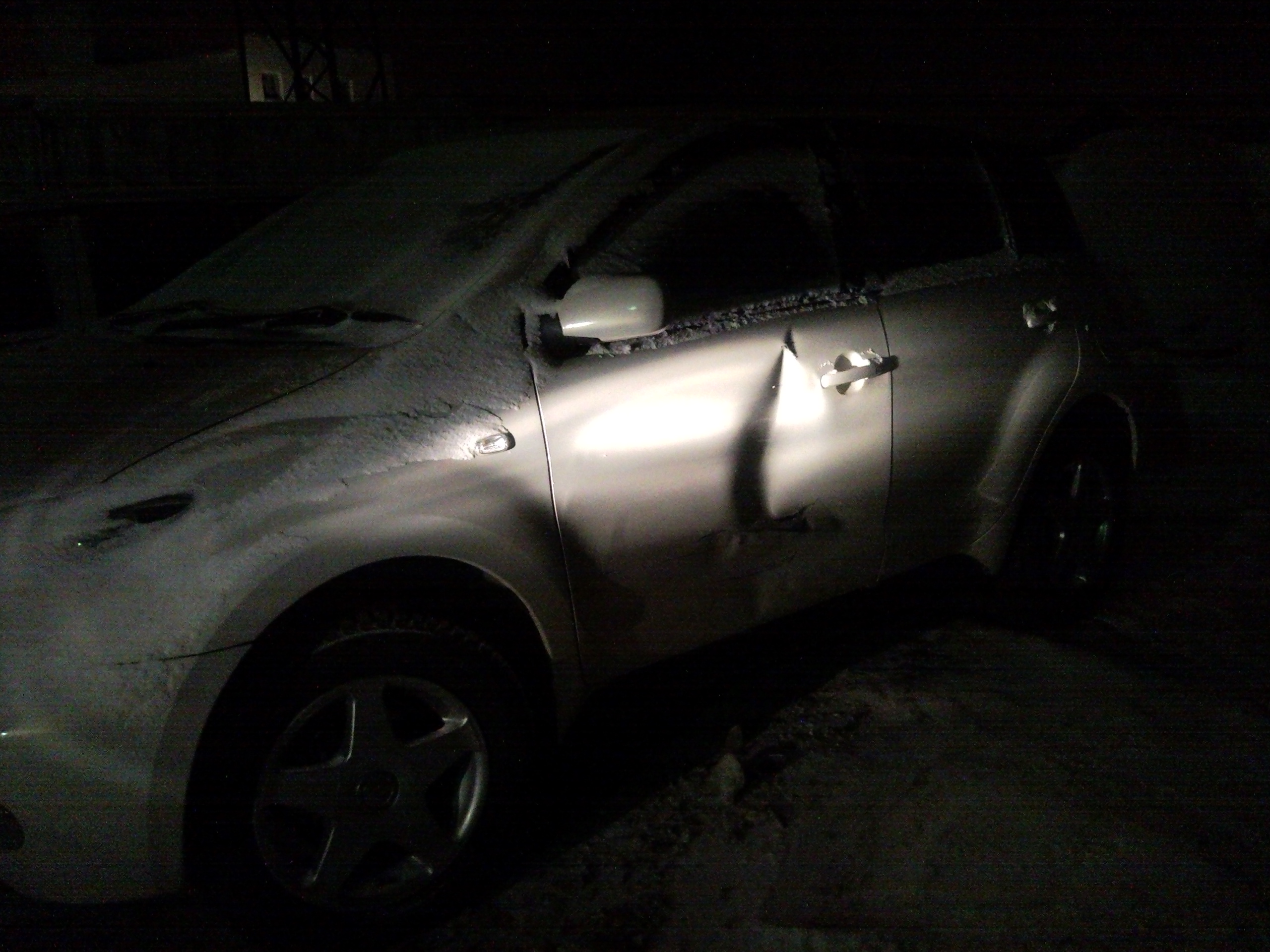 Ночью сработала сигнализация, я выскакиваю на улицу, подбегаю к автомобилю, гляжу, а там такое... (см. фото) Вижу удаляюшийся грузовичек с манипулятором (краном). Он слыша сигнализацию и видя меня (как мне показалось) притормаживает, но видимо в этот момент ссыкота побеждает совесть и он быстро удаляется. Догнать я его бы не успел... Примет почти нет, некоторые основаны на дедукции. Грузовичек небольшой, светлый, с коричневым манипулятором (но не факт, может в кузове был просто хлам). Судя по фото оставленного протектора задние колёса не спаренные (два колеса на задней оси). Так-же протектор похож на вертолетный. В общем перво-наперво хотелось бы узнать местоположения светлого грузовичка с коричневым манипулятором, ну или хотя б его номер. П.С. Извините что фотки большие, не стану уменьшать из-за плохого качества ночной съёмки, а с таким качеством может кто ещё чего рассмотрит. -------------------- Переходи на темную сторону!