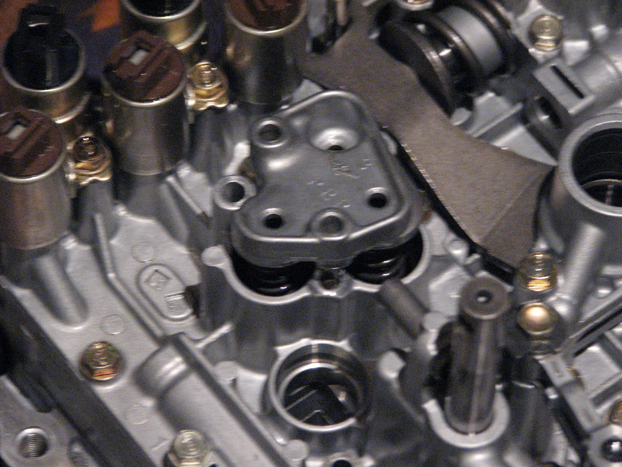 оригинал тут ссылка доступна только зарегистрированным фотографии сейчас мною скачиваются, как сольются - выложу аттаченый архив, уж больно они большого разрешения чтобы пихать их в галерею. ================================================================================ = Всем доброго времени! Начну с предистории. Давненько тут на форуме общались по поводу замены масла на стенде(типа 100%) ссылка доступна только зарегистрированным . Я поменял на стенде, уважаемый man-at-work говорил что не стоит этого делать, мы спорили :smile3: Я утверждал что ничего страшного, он обратное. Снимаю шляпу перед ним, все что он и говорил случилос.... коробка умерла. Как-то осенью хорошенько пооджигав, заметил что при переключении с 1 передачи на 2 происходит пробуксовка (причем только на высоких оборотах). ну чтож смирился - ездил как пенсионер(в таком случае пробуксовка меня не напрягала). Так проездил еще пару месяцев... потом по ощющениям пока едешь плавно газ не давишь машина разгоняется, но стоит резко нажать на педаль - обороты прыгают, а машина не ускоряется.... Однажды решил продемонстрировать данную проблему моему другу. Нажал в пол- а машина еле-еле едет, остановился на светофоре и больше тронуться не смог..... коробка померла Съездил в специализорованный сервис кто занимается ремонтом коробок узнать сколько будет стоить ремонт. Мне озвучили цифру около 50т.р. (со словами что от коробки моей останется только корпус - я подверг сомнению данное утверждение. Потому что если посчитать все НОВЫЕ запчасти для коробки выйдет больше 100т.р). и не понравилось отношение. Контрактную коробку предложили мне за 45т.р. (но это кот в мешке - гарантий того что мне не придется ее заменить даже через месяц нет) Я решился делать сам (опыта раньше не имел никакого). Сразу прошу прощения у бывалых критиков я не мастер писать отчеты и т.п. но все же хочу поделиться. ногами не пинать :smile3: Описывать съем коробки не стану так как это действительно большой геморой! (пусть снимают в сервисе - это стоит своих денег). У меня небыло лебедки чтоб вывесить коробку за уши - кто знает тот поймет что это значит. Снимал с помощью 4х домкратов сначала подрамник, подвеску переднюю, привода, потом коробку (сломал фишку соленоида линейного давления (смог все спаять - но это отдельная история)) Снял коробку, слил масло из коробки и гидротрансформатора (бублик в простонародье) - откачивал шприцем. В масле ничего не обнаружилось ни трухи, ни металической стружки, только сгоревшее черное масло. Внешний осмотр показал что трансформатор в порядке, цвета побежалости металла небыло (от перегрева металл синеет) - отставил в сторону. Начался разбор коробки, снял торцевую крышку пластиковую, под ним разъем к датчику положения(ингибитор если не ошибаюсь). Снимаем разьем, снимаем датчик положения. (На этом этапе фоток небыло). Откручиваем крышку на 10 болтах и видим: [ATTACH]23704[/ATTACH] Снимаем шестерни(парковочную - левая резьба, и шестерню первичного вала), снимаем парковочную собачку, выставляем рычаг переключения с прорезью на корпусе, разжимаем стопорное кольцо вторичного вала (иначе не снимется корпус.) Снимаем крышку соленоидов, снимаем проводку поленоидов и главный клемник. [ATTACH]23714[/ATTACH] Откручиваем 19 болтов по периметру корпуса и снимаем корпус (снимается он с усилием) и дальше видим: [ATTACH]23710[/ATTACH] C промежуточного вала снимаем шестерню, вилку включения задней п