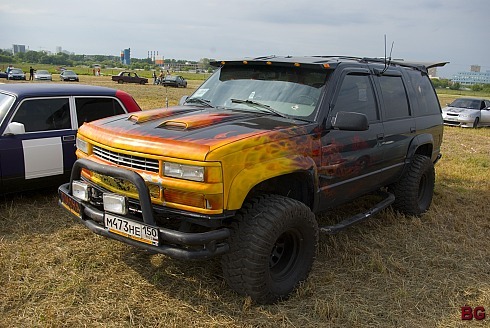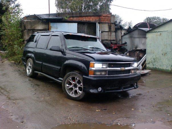 Внешность модели уже начала устаревать. Просторный салон автомобиля может вместить до 9 пассажиров. Материалы отделки интерьера довольно просты, однако, эргономика хорошая. Из недостатков можно отметить излишне мягкие сиденья с отсутствием боковой поддержки. Внедорожник (3 или 5-дверный) не очень любит больших скоростей и серьёзного бездорожья. Трансмиссии Tahoe представляет собой всегда работающий задний привод с подключаемым передним мостом. Примерные цена некоторые запчасти для "американца"" таковы: фара - $ 70, капот - $ 125, рулевая тяга - $ 20, тормозные колодки - $ 40. Chevrolet Tahoe - довольно валкий и медлительный автомобиль, который не всегда целесообразно эксплуатировать на российских просторах. Стихия модели - относительно хорошие дороги. Кузов -серьёзных нареканий к кузову нет. На старых экземплярах встречаются небольшие очаги коррозии. Ходовая часть - довольно мягкая подвеска надёжна. При неаккуратной езде очень быстро "кончаются" амортизаторы. Трансмиссия - "автомат" с 4 ступенями надёжен. Двигатель - 8-цилиндровый бензиновый агрегат объёмом 5.8 л. низкооборотен и обладает большим моторесурсом. Про мою машину ( взято из инета ) В общем сегодня стал обладателем этого монстра. Давно и очень хотел Таху. Когда увидел объявление коллеги по клубу о продаже именно этой машины, чуть с ума не сошел. подал заявление в банк на кредит. Там чет мурыжили меня, а у продавца появились покупатели. Он говорит типа ну что ждать не буду. Я подумал если ей суждено быть моей, она будет моей. Так и случилось 26 сентября 2009, она моя. Спасибо огромное предидущему владельцу buldozer422, что сохранил в таком отличном состоянии этот легендарный автомобиль. От частья ездил сегодня целый день на нем, счаслив безмерно Машина вызывает восхищенные взгляды прохожих и не оставляет никого равнодушным. Фотки этой машины, но пока не мои, скоро наделаю свои. Что было сделано до меня 1. Замена световых приборов, обычных на тюнингованные. Сзади светодиодные. Спереди тоже красивые 2. Установка оч красивых накладок на решотку. Интересующимся (www.pilotautomotive.com/C…px?CategoryID=1003&PCID=9) 3. Небольшой лифт. 4. Замена дисков и резины (hankook dunapro mt 31/11.5 r15, вылет диска -55,ширина 10, сзади проставки, перед закрутка торсионов(наполовину). подрезал чуть передний бампер и пришлось снять передние брызговики. 5. Установка компьютера MULTITRONICS 6. Установка подлокотника от форда вместо штатного 7. Установка магнитолы вместо штатной в переходные рамки. 8. Замена сигнала на воздух. 9. Замена штатного фильтра на нулевик 10. Замена паука на современную модель с электронными форсунками 11. Замена выпуска на крутой прямоток от российского тюненгово отелье zil130 12. Замена лобовухи на целую 13. Установил стильную насадку на глушитель в виде шеви креста 14. Установил ноздри на капот 15. Козырек на крышу 16. Лампочки в пороги 17. Расширители арок на заказ (www.tuning-alex-m.ru/) 18. Наклейка шеви клан 19. 10 фенингов на счастье После покупки немного покатался и поменял колеса на более штатные, чтоб не торчали из арок и снял кенгурятник. На мой взгляд машина стала выглядеть лучше. Часто задают вопросы типа сколько жрет сколько прет, она наверное большая, сколько грузить и прочее. ЧТОбы каждый раз не отвечать собрал немного технических характеристик. Платформа у Шевроле Тахо от грузовика С/К 1500. Сварная рама лестничного типа, имеет отсек для двигателя. Габариты Тахо 