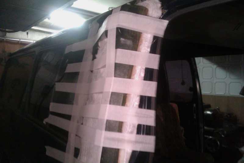 Гель подсох, кладём два слоя стекломата 150, даём подсохнуть часа 4. Потом кладём толстенную стеклоткань (для утепления труб чтоли) этот слой идёт как армирующий для жосткости матрицы. На фотке из картона сделаны фланцы, т.к матрица будет разбиратся на 4 части, для удобства вытаскивания самого изделия из матрицы. А то понаделал воздуховодов и углублений в козырьке, потом прикинул что матрица сложная будет, деватся не куда надо делать -------------------- 89833066251