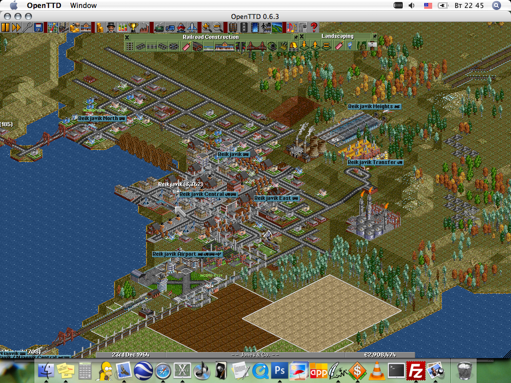 Изучил хорошенько теорию роста городов. Получился мегаполис.. с поездами так и не разобрался, после 3 катастроф просто снес все рельсовые пути. -------------------- 89148508740