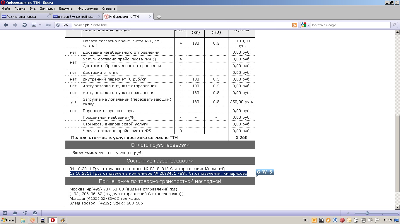 Что-то я не увидел в первом сообщении слов о Желдорэкспедиции. Может она другой фирмой отправляла. Так что не надо воздух сотрясать. С Желдорэкспедицией работал с самого открытия, пока претензий не было, и отправление отслеживается по Инету, груза шли и из Сибири, и с центра, и с Владивостока.