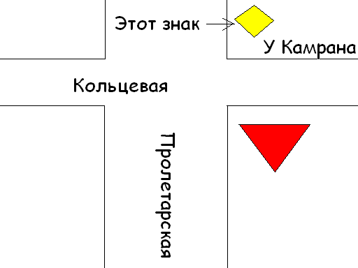 На мой взгляд, лишний знак на перекрестке Пролетарская/Кольцевая, а именно там, где начинается 3-й микрорайон, возле шашлычки "У Камрана". Там стоит знак "главная дорога" Причем главная дорога - Кольцевая, перед ее пересечением, на Пролетарской, стоит знак "уступи дорогу", а сразу после перекрестка знак "главная дорога", смотрящий в ту же сторону. Ставь пол-литру! P.S. или схему рисую! -------------------- «Ад и рай – в небесах», - утверждают ханжи.