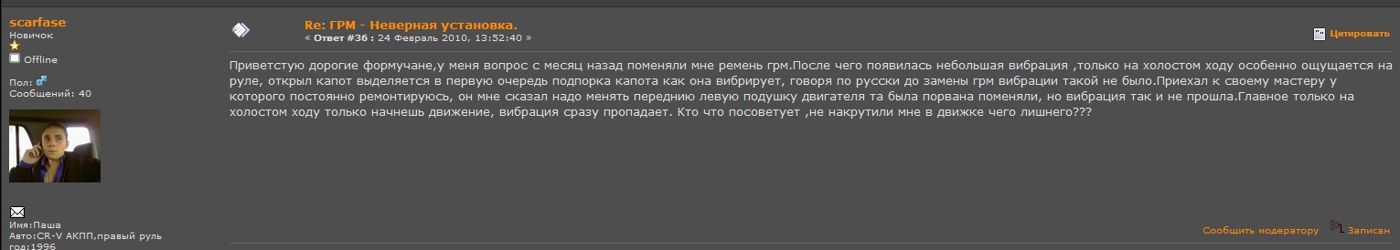slava260 Допустим неправильно поставили ГРМ. Какие последст... 6.5.2014, 19:36