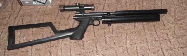 Давно присматривался к данному девайсу...Ну, что сказать, ложе, типа "палка", для меня неудобным оказалось,хотя дерево неплохое. Имея в запасниках Кросман 1377 и приклад к нему, путём нехитрых манипуляций немного преобразил "шестидесятого"... Удобство данной конструкции пока под вопросом, поскольку твёрдого решения о формате девайса пока нет и работы по достижении комфорта будут продолжены, так же, попозже, пост будет дополняться, будут данные по отстрелу через хронограф, по мишеням и прочая информация о девайсе...А пока - парочка фотографий, так сказать, "до" и "после"... позабавиться... -------------------- |