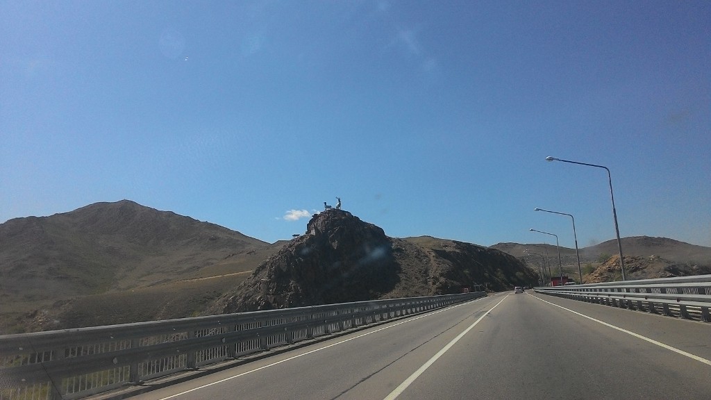 Пройдено 874 км. Всего — 5213 км. Пока отдыхал в гостинице, было время под бутылочку-другую пива обновить музыкальное содержимое флешки и обдумать дальнейший маршрут. Я подумал, что останавливаться на Байкале еще рано, хотелось искупаться в легендарном озере, но лето еще даже не наступило и было прохладно. Но пару кадров надо сделать в обязательном порядке. Эх, знал бы я, при каких обстоятельствах остановлюсь на Байкале на обратном пути.... Следующая остановка — город Иркутск. Последнее время вставать пораньше не получается, проснулся только к восьми утра. После ставших уже привычными регулярных проверок автомобиля на предмет разного рода утечек двинул в сторону Иркутска. Вдоль дороги обратил внимание на небольшой аэродром с самолетами и вертолетами. Возле автобусных остановок стоят столбы с крутящимися штуковинами наподобие ветряков. А еще на этом участке дороги мне встретился единственный лежачий полицейский установленный прямо на федеральной трассе, пускай и возле остановки. Нигде такого больше я не встречал. В 12 часов дня пересекаю границу республики Бурятия. Встречает меня средних размеров, красивая стелла со схематичным изображением территории республики. Восточный въезд в республику Бурятия Трасса «Байкал» до Бурятии в основном представляет из себя неплохого качества двухполосную дорогу, проходящую как среди лесов так и равнин. В республике до Улан-Удэ дорога почти такая же, немного плывет, но этого почти не замечаешь. После Якутии восприятие дорог сильно меняется, асфальтовые «люльки» настроения не портят. Пейзажи вокруг стали из себя представлять красивейшие, огромнейшие просторные поля, местами напоминающие пустыни. Все вокруг просматривается на десятки километров вперед. Трафик минимальный. Было солнечно, тепло, настроение на высоте. Останавливаюсь перекусить «В гостях у льва». Хотел попробовать, то что называют буузами, но их готовят в среднем по полчаса. Дегустацию пришлось на некоторое время перенести. Подъезжая к столице республики средняя скорость движения упала до 50-60кмч. Дорога сужается и частые повороты на трассе не позволяют гнать. Здесь же рядом протекает река Селенга. Окружающая ее местность, как и сама река, невероятно впечатляющая. Чтобы по достоинству оценить местные красоты их надо видеть своими глазами. Фотографиями этих ощущений не передать. Проезжающих по мосту через Селенгу «встречают» олени с отшибленными рогами. Приближаясь к Улан-Удэ, я стал осознавать, что со всей этой якутской грязью на машине выгляжу реально как дурак. Все вокруг едут чистые и новенькие, а я полужелтый, полукрасный, полу-хрен-знает-какой. Нахожу супермаркет, покупаю там магнитики в качестве сувенира, бутылку местного пива, кваса в дорогу, и еду дальше. Пока ехал по бурятским дорогам, мне попалась навстречу фура, груженая серыми уазиками-буханками. Я про себя еще посмеялся, мол, «угадайте, куда она едет? Неужели в Якутию?». Смех смехом, а почти сразу же асфальт сменился отвратного качества грунтовым участком дороги в лучших традициях трассы «Колыма» в Чурапче. С этого момента я для себя вывел плохую примету — встретилась фура с уазиками — жди хреновую дорогу. Ничего оригинального. Кафе имени трассы. Через некоторое время трасса стала проходить параллельно знаметимому озеру Байкал. В этот день я пересекаю еще одну гра