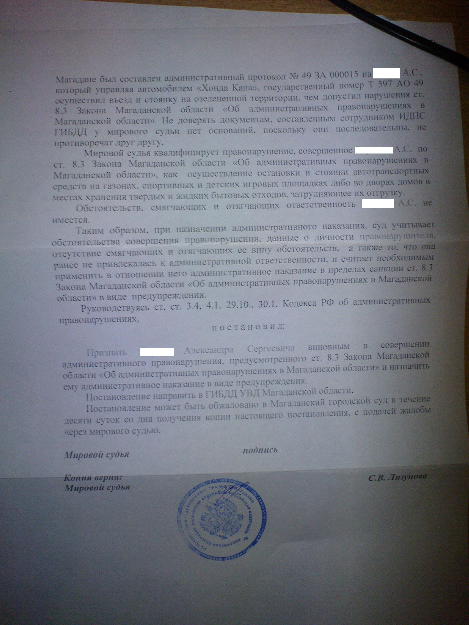 сегодня получил постановление суда(на суде не был, сдавал экзамен), признали виновным и сделали предупреждение
