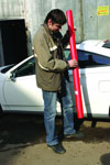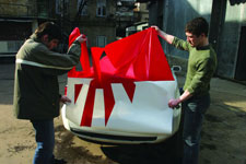 Для этого занятия не нужно получать лицензию или проходить какие-то курсы. Почти каждый человек делал нечто похожее хотя бы раз в своей жизни, однако в действительности все оказывается намного труднее. И простая, на первый взгляд, задачка – налепить пару метров пленки на кузов – может стать серьезным испытанием твоей аккуратности и терпения. Наш пациент – белая Celica в кузове ZZT-230, которой явно чего-то не хватает. Совместные мозговые ускорения хозяина машины и мастеров наклеечного дела из фирмы autocover.ru привели к решению сделать винил «Kamikadze» – в виде солнца, стилизованного под японский флаг. Перед тем как приступить к работе, поверхность машины тщательно моют и вытирают сухой тряпкой. Очень важно чтобы на кузове было как можно меньше пыли, песка, и прочей фигни. Готовый рулон с наклейкой может показаться цельным куском пленки, однако плоттер уже сделал свое дело и, если внимательно присмотреться, то можно увидеть тонкую линию – надрез по контуру нашей картинки. Развернув пленку, разбираемся, где верх и низ картинки (в нашем случае солнца). Находим края и аккуратно отделяем лишнюю самоклеющуюся пленку от белой основы. Без особых усилий излишки пленки отходят от бумаги, но тянуть надо медленно, чтобы не порвать наше солнце в местах стыков лучей. Лишнее лучше отрезать сразу, так как будет очень неприятно, если лишняя липкая пленка прицепится к одежде или к основному изображению. Когда все лишнее снято, пора доставать скотч и второй комплект ножниц или ножа для бумаги. Без особой жалости отрезам лишнюю бумажную основу, на которой нет частей рисунка. После этой процедуры будет значительно удобнее работать. Прикладываем изображение на бумаге к борту машины и закрепляем края скотчем. Вырезаем проем в колесной арке. Проделываем такую же процедуру с наклейкой для противоположенной стороны автомобиля. Результат пока закрепляем скотчем. Два фирменных скребка и упругая губка: весь нехитрый инвентарь, который будет помогать разглаживать наклейку. В компании явно не хватает специального фена – но мы справимся без него. Отделяем картинку от бумажной основы частями, так будет легче наклеивать. По ходу дела смачиваем пленку водой, чтобы на время ослабить действие клея. Аэрозолем распыляем воду в месте приклеивания и прикладываем часть изображения. Времени на разглаживание немного, пленка подсыхает, и клей начинает сцеплять картинку с поверхностью. Потому делаем все оперативно. Завершив наклеивание и разглаживание, делаем стратегический разрез на лючке бензобака. Так же не забываем про стыки дверей. Более двух часов напряженной работы, и Celica получила индивидуальную наклейку, которая станет основным элементом дальнейшего внешнего тюнинга этого автомобиля. Многим наклейка винила кажется очень простым занятием. Это так и есть, если клеить логотипы на дверь, но наше «солнышко» мы явно недооценили, поэтому совет тебе, если ты собираешься самостоятельно украшать машину таким способом: отнесись к процессу серьезно, возьми друзей. Работай лучше в помещении, там не помешает ветер, вырывающий пленку из рук и поднимающий пыль. Чтобы облегчить себе жизнь, воспользуйся феном для разогрева изображения в местах изгибов кузова. -------------------- Водка не бензин за городом расход больше