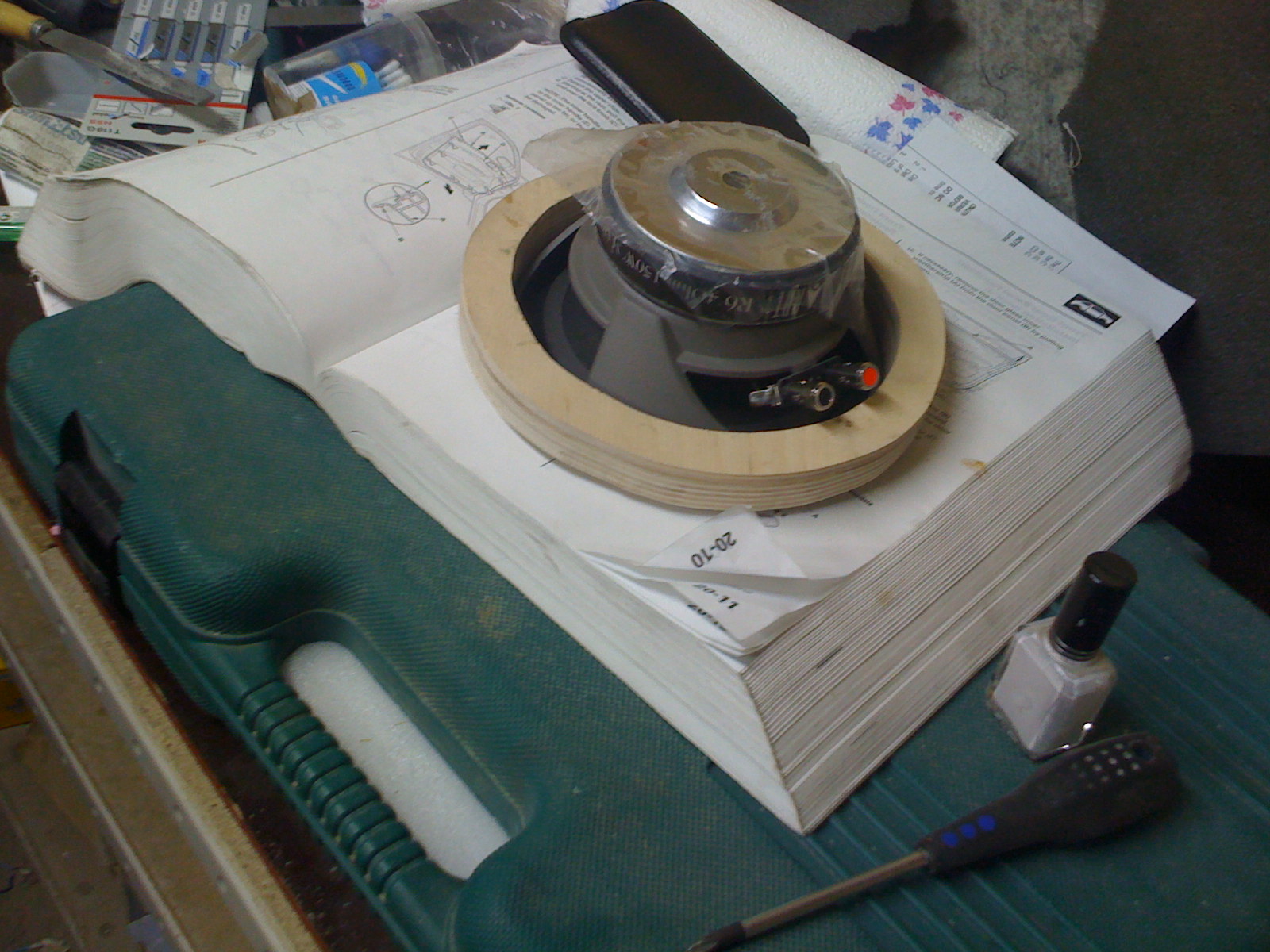Огромное спасибо за помощь и участие камрада Kaktus`a, неоценимую консультацию специалистов из ателье SolarAudioStyle. В результате распилилась дверь, выпилилилсь кольца из фанеры, все примерилось - расстояние до стекла примерно 5-6мм, если не больше. -------------------- [Team Мирный Танк] [Guardians Of The Blind Team]
