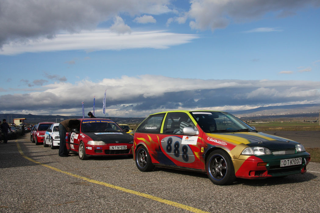 Сначала я собиралась в Батуми, где должны были состояться соревнования по дрэг-рейсингу, а затем в Тбилиси, где на знаменитой кольцевой трассе в Рустави проходил финальный этап кольцевого сезона 2009, а заодно обещали шоу с участием забавных гоночных машинок под названием «Легенды» и 3-х болидов Формулы-3. Конечно, было и просто интересно посмотреть, во что превратилась эта прекрасная страна за те много лет, что я там не была. Батуми Меня пригласили на мероприятие команда Артлайн и ее владелец Шота Абхазава, которые и были соорганизаторами и вдохновителями происходящего. Официальным организатором являлась ГНАФ — Грузинская национальная автомобильная федерация. Но поездка оказалась далеко не столь простой, как я рассчитывала. Лететь пришлось через Киев, так как из-за отсутствия дипломатических отношений с Грузией прямых рейсов туда нет. А Батуми встретил ужасной погодой: мокрой и холодной. Сам город потихоньку отстраивался после всех войн и кризисов: улицы были перекопаны под замену коммуникаций, дороги укладывались заново, а в приморской части города началось строительство шикарных пятизвездочных отелей — Батуми всегда был прекрасным курортным местом. Особенно красивой была новая набережная, построенная за рекордно короткие сроки в приморском районе города — настоящий курортный променад, украшенный фонарями и пальмами, которые подарил городу арабский шейх. Плюс к этому некоторые улицы этого района уже заранее проектировались таким образом, чтобы через несколько лет могли превратиться в полноценную городскую гоночную трассу по принципу Монте-Карло. Городские власти отводят международным кольцевым соревнованиям значительную часть в бюджете города. А на одной из центральных площадей Батуми — площади Эры — был разбит лагерь команды Артлайн, где на обозрение любопытных местных жителей выставили 3 формульных болида — одну даллару (dallara) и 2 артека (arttech). Что такое дрэгрейсинг в Грузии Дрэг-рейсинг должен был начаться на следующий день в 4 часа дня — на одной из главных улиц Батуми — Приморском бульваре. Купленная специально к этому случаю телеметрическая система Race America, к сожалению, застряла на турецкой таможне, но удалось обойтись и без нее, тем более, что в этот раз способ проведения драга в Батуми на квотермайл оказался довольно смелым… Дело в том, что гонки проводили одновременно по двум полосам бульвара в противоположных направлениях. Во время свободных заездов соперники сначала стартовали в одну сторону, доезжали до финиша, разворачивались и… стартовали снова. Старты давались по старинке: представитель автофедерации выстраивал автомобили на стартовой линии и затем давал отмашку. По словам участников заездов на Приморском бульваре, весь местный тюнинг делается в дворовых гаражах исключительно экспериментальным способом, ибо любое оборудование — дефицит. Поэтому и самой крутой тачкой во время гонок считалась «чипанутая» ссылка доступна только зарегистрированным с фильтром нулевого сопротивления. «Закрытый парк» на самом деле оказался абсолютно открытым, там бродили все желающие, а в глаза бросалось удивительное единодушие участников в вопросе выбора авто: либо BMW, либо Honda. На вопрос «Почему?» отвечали коротко: «Потому что едут!» Однако общее ощущение от дрэгмобилей было унылое: старые, потрепанные маши