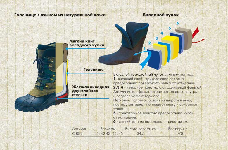 Третий год юзаю на рыбалках Хаски, те , что с кожанным верхом со шнуровкой-претензий нет-тепло, сухо и комфортно. Чулок вытаскивается.