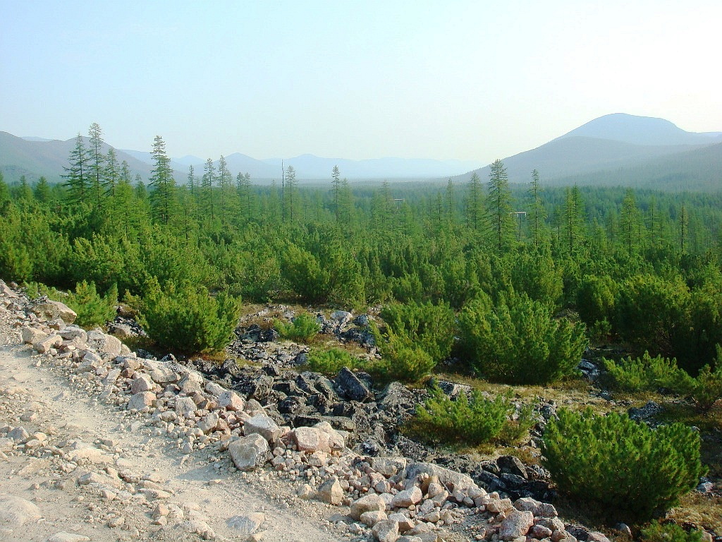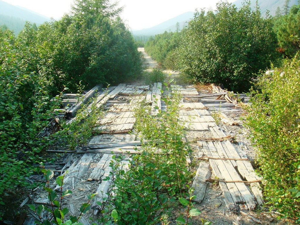 Давно я собирался на Джека съездить и вот дождавшись погоды , подшаманив ЛУАЗик ,26-07 2010 в 19-40 я стартанул из Синегорья . На мосту был в 21-00 , заправился , записал спидометр , перекрестился и ну попёрли.Ехал до Пламенного там заночевал в 23-00. В 6-30 меня разбудил ехавший с метео Сайгак, я встал, попил чайку и поехал далее, через 2 км объезд справа (нормальный).Сухахы воды мало проехал без проблем, на 23км длинные лужи с объездом по левой стороне, сам объезд весь в глубоких колеях, пешком наметил путик подпилив мешающий стланик и ходом проскочил.До руч Снежный (36км),несколько объездов сгнивших мостов, то валуны то лужи а местами хорошая дорога я даже третью втыкал.На Снежном в 11-00 встретились мне Сайгаки с Боевого, вывозили детей домой. Я расспросил у водителей про дорогу, они меня успокоили и объяснили где и как проехать.А сами облепили Луазик и как дикари ух-ты ах-ты. Пообедав двигаю далее, начинается валуньё , следующие 5км до ( Игуменки) я ехал 2 часа. По валунью строил дорогу себе,ямы закладывал а въезды на валуны делал пологим. Игуменка это как я понял длинное болото перед перевалом, болото было высохшим и проехал без проблем, там ещё объезд по левой стороне был но я поехал на прямки. На 46км меня обогнала Нива с Магадана, на 15й резине для асфальта ,мужик говорит мол нормально едет. В 15-00 добрался до егерьского участка, приделал табличку М-49, Джек весь в дыму, фотки не ахти. Видел (не знаю как назвать) ярлычок от Мотопутешественников, я их три штуки видел.Еду далее, спуск весь в валунах и крены очковастые.На объзде по торфам сломал правую рулевую тягу, повезло что возле резьбы, я напильником нарезал ещё несколько витков, затянул и хватило аж до дому.В 17-30 я плыл уже по оз Танцующих-хариусов,и плакал от счастья. На Боевом был до 29-07,пил пиво, купался, лазил по округе, на лодке по озеру катался. Рыбу не ловил она ушла Кульсьен,да и сил не было после дороги,жил в 6м домике куда меня Серёга (охранник)поселил. 29-07 в 12-00 я стартанул до дому,до егерьского уч-ка 3км подымался три часа, движочку в 40л/с тяжковато.Да ещё и за тягу переживал. Через 10км на спуске с перевала в 17-10, встретил двух заряженныж джипов.В 19-00 на Снежном, с голодухи объелся голубики.В 22-00 переехав Сухахы, встал ночевать, на костре нагрел чаю, тушенки.Тока улёгся спать и тут выходит медведь, обнюхал из далека, потом под машиной доел тушёнку, переворошил посуду и ушол.У меня так тряслись руки что получились тока 3 фотки, остальные размазанные.Еле уснул, ещё как назло захотелось в туалет. Утром в 10-00 двинул далее, в 12-30 был на мосту . По моему спидометру от моста до Боевого 52км. Вот малость фоток,буду дополнять.