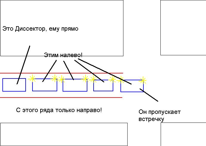 А сейчас в чем разница для тех, кто в левой полосе? Там же так и есть, движение прямо и налево из нее и то, что в правой полосе разрешено движение прямо, стоящему (точнее находящемуся) в левой полосе ничего не дает. Собственно, когда время не час-пик, то правая полоса свободна и из нее с нарушениями вверх на Парковую поворачивают я уже даже нарисовал в Пейнте твою ситуацию. Ты вот такое предлагаешь? -------------------- 89148508740