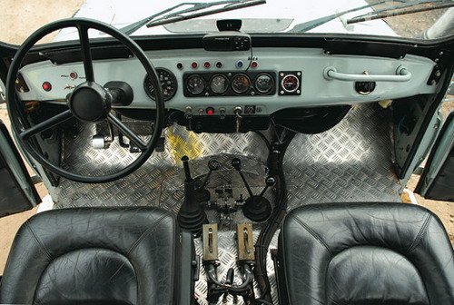 На территории мастерских обнаружилось целое гнездо машин ульяновского производства. Ожидавший нас автомобиль выделялся чистотой и гражданской расцветкой среди камуфлированно-военного стада собратьев. Ого, а салон-то – кожаный. Как оказалось, от Saab 9000. Но что же кроме шведской кожи предложил «Галагрин» владельцу этого аппарата?
