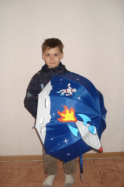 Наш первый хваст "Тимуровец с зонтиком", к сожалению наш рост и размер ноги не позволил приобрести весь комплект, но мы и зонту очень рады!!!