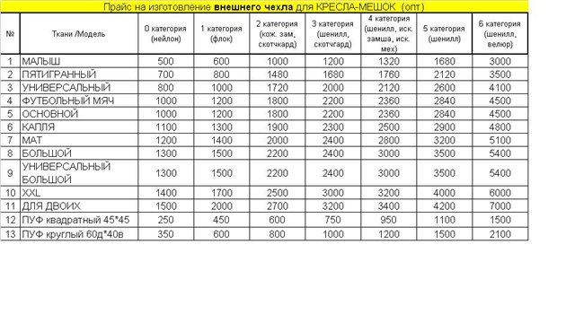 Впереди отпуск и уборка верхней одежды в шкаф..) поэтому предлагаю: 1. Вакуумные пакеты для вещей LOKS, а также швабры, щетки, салфетки из микрофибры и много всего интересного!!! Салфетка из микрофибры - аналог всем известного БелКота, производятся на той же фабрике, но цена в несколько раз ниже!!! Вакуумный компрессионный пакет Loks Space Maker MIDDLE Вакуумный пакет предназначен для компактного хранения и транспортировки постельного белья, одежды, мягких игрушек и т.д. Очень удобен для сезонного хранения одеял и подушек. Вакуумный пакет позволяет защитить находящуюся в нем вещь от: 1. Пыли 2. Плесени 3. Насекомых 4. Грязи 5. Запаха 6. Воды Мешки изготовлены из полиэтилена низкого давления (высокой плотности) Толщина плёнки 0,8 микрометров. При экструзии пленки (изготовлении) был ведён наполнитель- светостабилизатор для защиты от ультрофеолетового излучения т.е от обесцвечивания цветных вещей. ИНСТРУКЦИЯ ПО ЭКСПЛУАТАЦИИ 1.Упакуйте вещи в пакет. Убедитесь в том, что вещи чистые и сухие. Аккуратно сложите вещи таким образом, чтобы молнии и другие острые аксессуары оказались прикрыты деталями одежды. Оставьте достаточно места(примерно 10 см до замка пакета) для свободного закрытия. 2.Закройте пакет. Проведите специальной прищепкой(или пальцами) вдоль замка по всему краю пакета. Убедитесь что пакет закрыт герметично. 3.Удалите воздух из пакета. Снимите защитную крышку с клапана. Открутите клапан в направлении «ON» (не откручивайте клапан до конца). Плотно прижмите шланг пылесоса к клапану и, включив пылесос, удалите воздух из пакета или прижмите специальный насос и механически удалите воздух из пакета. Закрутите клапан до упора в направлении «OFF». Закройте клапан крышкой для его защиты. Объем вещей из пуха и пера не рекомендуется уменьшать более чем на 60% во избежание повреждения пера/пуха. 4.Вещи готовы к хранению! Вещи надежно защищены от моли, влаги, запахов, насекомых и пыли. При длительном хранении вещей открывайте пакет каждые полгода и повторяйте пункты 1,2,3. ВНИМАНИЕ. Пакет хранить в недоступном для детей месте. Не храните с острыми, нагревательными приборами при температуре выше +35C. Не перегружайте пакет! Вес упаковываемых вещей не должен превышать 15 кг. Не рекомендуется хранить в пакете грязные, сырые вещи, колющие и режущие предметы. Если предполагается длительное хранение вещей, рекомендуется периодически проверять сохранность пакета. Вакуумные пакеты могут использовать многократно! Фирма производитель оставляет за собой право изменять комплектность. Насос в комплекте! Работает со всеми видами пылесосов! Цена: пакет вакуумный X-LARGE 124*91(1 шт)- 260 пакет SMALL 50*35(3+насос)-260 пакет вакуумный LARGE 100*67(2 шт)- 347,10 ======================== минималка: 15 тыс. Думаю, что договоримся доставкой ЕМС САЙТ КОМПАНИИ ссылка доступна только зарегистрированным В изумительном ассортименте Вы можете убедится сами, зайдя на сайт компании, а цены Вас приятно удивят и порадуют!!! ссылка доступна только зарегистрированным ============================================== А, эта закупочка?) 2. Кресла и пуфы сайт *http://me-shok.ru/catalog.php* (* убираем) все ткани разделены на ценовые категории. так же на саите производителя есть подробное описание всех тканей (состав, характеристики). Выбор огромный!))) ссылка доступна только зарегистрированным Оптовый прайс До конца мая у поставщика акция: Любое кресло из ткани 2 категории по цен