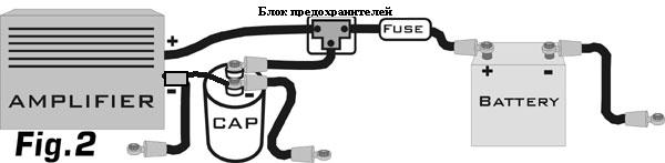 У меня почти та же фигня полностью, тока саб МОБ-30, усь тот же, кондер по-моему Mystery 0.5ф, модель не помню. Ставил все сам, есть несколько схем подключения кондеров. Я выбрал самую простую, где кондер подключается параллельно на плюс и минус усилка, провода короткие около 10 см. Это главное при подключении кондера - чтобы провода были не очень длинные. Вообще грамотно это все делается через дистрибьютор питания (разветвитель короче, один контакт на усилок, второй на кондер). Я подключил как проще, т.е. тупо параллельно на выводы питания усилка.