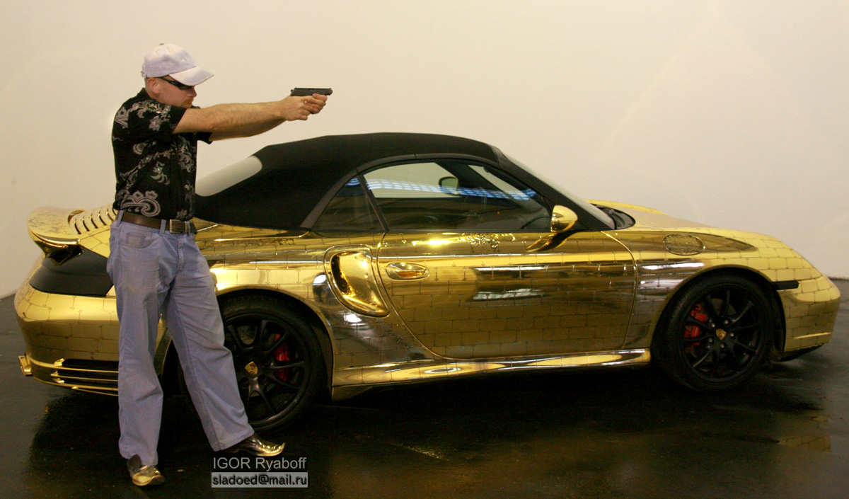 Цитата(Dimon) На дорогах Москвы ездят на ювелирных авто Вот, наконец, машина, которой точно будут уступать дорогу в пробке на 3-м кольце. Даже "бентли" и "хаммеры" расступятся перед Porsche 911, покрытым золотыми пластинами. Фото роскошного автомобиля появились в зарубежных СМИ, и сердце наполняет гордость: у чудо-авто – московские номера. Позолоченные автомобили мы уже встречали, но этот, из чистого золота – первый. Что же это, роскошь или дурной тон? Ясно одно: этот Porsche 911 - из России. И его чертовски богатый владелец имеет огромное количество свободных средств, чтобы купить для своего любимца 20 килограммов чистого золота. Обычного Porsche 911 стоимостью в 200 тыс. долларов хозяину оказалось мало, и он решил подарить своему железному коню новый наряд из золотых пластин. И, конечно, отделать ими и без того роскошный салон автомобиля. Стоит отметить, что Porsche давно является предметом вдохновения для людей креативных. С помощью специалистов из Общества российских художников аэрографии дизайнер Денис Симачев привнес русские традиции в модель Porsche 911 turbo, расписав его под хохлому. Интересно, что уже можно говорить о целом поветрии. Позолоченные авто действительно входят в моду у определенной группы населения. Тюнинг-ателье берутся покрыть автомобиль чистым золотом: «Бизнес-Стиль» уже писал о том, что в одном из немецких городов был выставлен в музее автомобиль Porsche boxter, весь покрытый золотом. А пока немцы выставляют подобные авто в музее, в России на них вешают «крутые» номера и с удовольствием эксплуатируют. ссылка доступна только зарегистрированным [attachment=4947:Gold__7_.jpeg][attachment=4941:Gold__1_.jpeg][attachment=4942:G old__2_.jpeg] [attachment=4944:Gold__4_.jpeg][attachment=4945:Gold__5_.jpeg][attachment=4946:G old__6_.jpeg] [attachment=4948:Gold__8_.jpg] Лично мне очень нравится -------------------- Квартиры, дома, дачи, участки в Калининграде и области.8-911-072-6Ч9Ч, WhatsApp, Telegram ★ Дзен познается в пробках. Спасибо! — miki