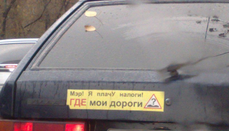 Прочёл, забыл, пока магаданские дороги не напомнили… Поворачивая сегодня с кольца 31го в Автотэк, объезжая лужу и сидевшего в ливнем стоке Хайса, был остановлен сотрудниками ДПС. Мне доступно объяснили, что я только что выехал на встречную, чем создал аварийную ситуацию. На мой вопрос, видит ли сотрудник на перекрёстке причину нарушения, он ответил, что глубина «озера» для джипа не велика и двигаться я должен был согласно ПДД-в крайне правом ряду дороги! Повыносив мне мозг 15 минут отпустил, пообещав в следующий раз заругать по полной… теперь о том, что наболело! Меня достали магаданские убитые дороги! Из года в год только хуже! Подарите наконец кто-нибудь дорожникам линейку - у нас в городе все ямы походу «правильные», по ГОСТу! Кто не согласен, и кого всё нормуль, предлагаю спуститься на Вашей машине с Телевышки до 31го и подняться обратно. Как минимум ремонт ходовой части я гарантирую! Вместе узнаем, какова глубина ям с крышками для ливневых стоков на улице Ленина. При этом будем двигаться согласно ПДД - в крайне правом ряду, как рекомендовал вышеописанный сотрудник ДПС. В пригороде Магадана дорог просто нет! Часть колымской трассы до аэропорта дорогой вообще назвать нельзя! Сплошные рытвины и люльки-траурные венки и цветы на деревьях через каждые 500 метров! Во дворах разруха как в 45 году после бомбёжки! В Новосибирске наблюдал, как на улице какие-то дядьки раздают наклейки на авто: «Какой мэр - такие дороги!», «Дороги - 3,14здец». Может и в нашем городе также это необходимо?! Раз чиновникам в служебных Лексусах (т.д и т.п.) всё мягко и ровно, это их слегка взбодрит!? Глядишь, и наши горячо любимые Владимир Петрович, Николай Николаевич вместе с начальником дорожников прочтут и прослезятся… для примера, фото с инета. P.S. не ругайте сильно,накипело Сообщение отредактировал kolosyan - 4.5.2012, 0:40 -------------------- Дмитрий