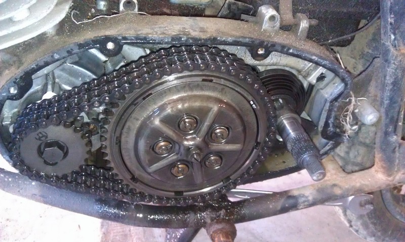ты б сфотал сам диск сцепления, уже и призабылось как оно тама смотрится, возможно перетянул (как их обозвать) винты - болты которыми диски стягиваются, надо поравномернее их затянуть, там их 6 штук кажется, еще как вариант, сам рычаг, котрый в правой крышке, не родной, а с макаки допустим (сам тоже менял, была ситуация), он короче и силу прикладывать надо было больше . помнится мне, что нейтралку всегда непросто было словить, потому как она не на полном ходе переключения, а вполхода, а с непрывычки и подавно такое явление практически у всех ну откручиваешь большую гайку на заднем колесе, отпускаешь сам вал, потом сзади есть типа шпилька с гайкой (со стороны большой гайки) и ей натягиваешь, как ремень гидрача на машине или генератора. попробуй для начала в пробке бака отверстие прочистить, после того, как заглохнет, ничего не крутишь? зажигание например, как потом заводишь? Вот фото как просил. Рычаг судя по всему родной спрашивал такой в "ларьке смотрел", на пол хода прбовал, так же как и на УРАЛе, на заглохшем нормально ловится,раза со второго но ловлю, а вот на заведенном не в какую вообще. Цепь не приводную а ту которая на картинке, приводную то и попугай натянет |