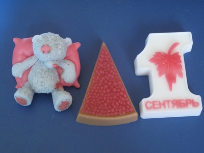 Заказали Пузана на розовой подушке и возникла идея с ароматом Свежая малина. Заодно опробовала и две новые формы: 1 Сентября и Ягодный пирог. Они тоже с ароматом Свежая малина. Спасибо! — Мари