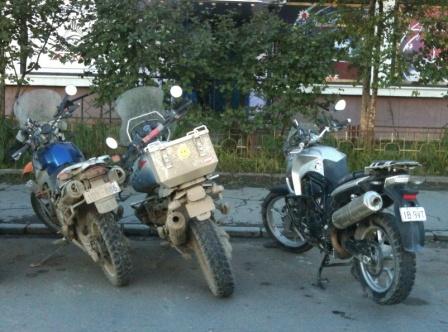 ... приехали очередные гости сборная мира London - Magadan на мото с двумя джипами поддержки .... остановились в гостинице Магадан ...... если интересно сайт указан на борту джипа .....
