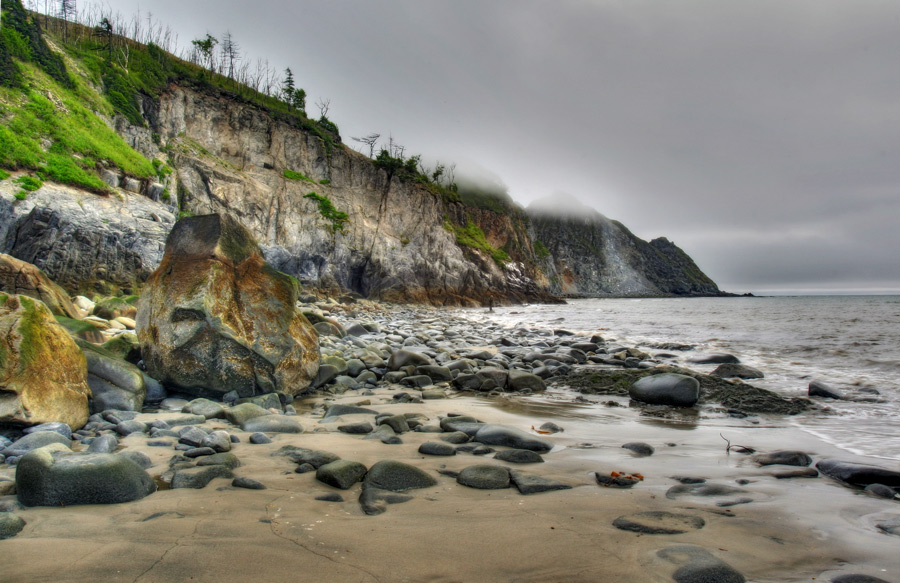 Поехал на восточное побережье гертнера в сторону Олы. Есть там райское местечко акурат за колчаковским ключом. Кто не был смотрите на снимке, это с другой стороны спящей красавицы, которую считает своим долгом снять каждый фотолюбитель и добавить ее в галерею. Туда можно попасть по двум поворотам с ольской трассы, а можно с колчаковского ключа. Тремя путями, которые сходятся и приводят в распадок. Там остов здания, рядом пятак и такой крутой съезд на каменистый берег. Было много рыбачков, на берегу стояла нива и 80 крузер, решил и я спуститься по крутому съезду и проехать под скалу. Съехал, было ссыкотно, но съехал. Сидящие рыбачки мальца матерно побухтели (как я потом понял, пытались предостеречь, но невнятно, в итоге я с ними чутка поскандалил по матери). Проехал в уголок и начал отдыхать. Моему примеру последовала еще одна приехавшая Нива, которая расположилась в десятке метров. Тут, млять, прилив. Опросив рыбачков, я решил во избежание полной воды увести машину на пятак, сел, поехал. По пути предупредил нивоводов что скоро их приливом омоет. А там берег ступеньками: у самого моря мелкий камень, далее небольшой "порожек" и камни покрупнее, и наконец выезд на тот самый крутой спуск. Проблемы начались с порожка. Не мог на него заехать, буксовал, поднимая тучи камней. На третий раз откатившись подальше забрался на крупнокаменную местность, и начал пытаться заехать на крутой склон. Получилось раза с третьего, тоже с шумом и пылью. По ходу собралась толпа, молодые парни растаскивали лежащие булыжники, все смотрели как я штурмую подъем. Один из зрителей выразил сомнение что 80-ка поднимется на эту горку. Ну, думаю, посмотрим. Вернулся на место дислокации. Тут очнулись нивоводы. Загрузили ее бедняжку под жвак, и долго пытались заехать на ступеньку. В итоге при помощи толкающих взобрались, и с разгону раза с пятого заехали на горку. 80 крузер тоже там изрядно повозился, даже дымок из под колес шел. Вобщем хорошо подумайте прежде чем на тот берег съезжать. А места зачотные. Отдыхается там любо. Проехать можно от эскуды, ну или на микроавтобусах без обвесов - дорога в общем нормальная, но есть парочка мест где мосты здорово крестятся. Машин было много, но ни одной пузотерки замечено не было.