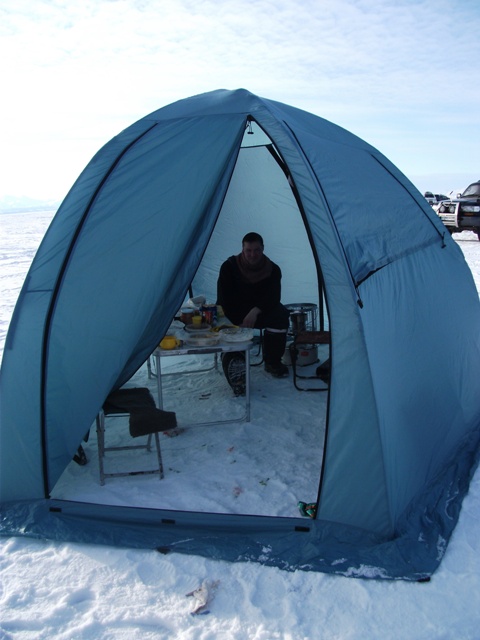 В прошлом году испытывали новую палатку и обогреватель (керона). Все хорошо. тепло и мухи не кусают
