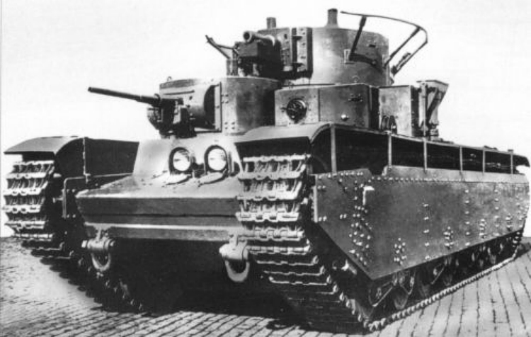 Танк Т-35 был принят на вооружение в 1933 году, серийное производство его осуществлялось на Харьковском паровозостроительном заводе с 1933 по 1939 год. Танки этого типа состояли на вооружении бригады тяжелых машин резерва Главного командования. Машина имела классическую компоновку: отделение управления расположено в передней части корпуса, боевое - в средней, двигатель и трансмиссия - в корме. Вооружение было размещено в два яруса в пяти башнях. В центральной башне кругового вращения были смонтированы 76,2-мм пушка и 7,62-мм пулемет ДТ. Две 45-мм танковые пушки образца 1932 года были установлены в диагонально расположенных башнях нижнего яруса и могли вести огонь вперед-вправо и назад-влево. Рядом с пушечными башнями нижнего яруса располагались пулеметные башни. Карбюраторный V-образный 12-цилиндровый двигатель жидкостного охлаждения М-12Т располагался в корме. Подрессоренные спиральными пружинами опорные катки прикрывались броневыми экранами. Все танки снабжались радиостанциями 71-ТК-1 с поручневыми антеннами. Танки последнего выпуска с коническими башнями и новыми бортовыми экранами имели массу 55 тонн и сокращенный до 9 человек экипаж. Всего было выпущено около 60 танков Т-35. -------------------- +7 908 227 98 28