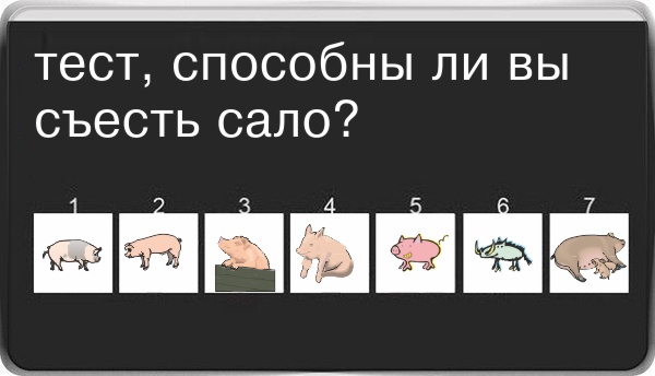Выберите изображение, думайте не больше 5 секунд. Ответ 1 -Вы достаточно жестоки, но при этом и осторожны. Вашими поступками всегда руководит совесть. В случае самообороны, Вы, пожалуй, сможете убить, чтобы защитить себя. 2 –Вы действительно безжалостны. Вас не мучают сомнения совести.Вы сделаете практически все, чтобы претворить в жизнь свои желания. Правильнее будет сказать, что обычно личное и финансовое благополучие для Вас важнее благополучия и здоровья других людей.Вы способны на убийство. 3 – В вашем случае все просто - вы не способны на убийство. Разве что понеосторожности. 4 -Вы обладаете высоким интеллектом. Интеллектуальный уровеньнекоторых представителей вашего типа может достигать 145 пунктов IQ, чтопризнается порогом гениальности (интеллект одного из серийных убийц, ЭдмундаКемпера, признан равным 150 пунктам IQ, сейчас он весьма успешно работает всотрудничестве с полицией и помогает им в вычислении преступников). Вы можетеубить человека, но только в состоянии аффекта. 5 –Вас нельзя считать жестоким. Ваше отношение к жизни определяетсяпорядочностью и гуманными принципами. На убийство Вы, в принципе, не способны. 6 -Вы можете Совершить преступление для полученияудовольствия. Убийство может стать способом удовлетворения ваших нужд, вывидите жертву как объект, необходимый для того, чтобы доставить наслаждение. 7 -Материальная и личная выгода являютсяосновными мотивами убийства для вас. В основном ваш тип состоит из женщин,причем убивают они преимущественно с помощью яда или же сильнодействующихпрепаратов, которые в больших дозах вызывают смерть. Однако среди такихпреступников довольно часто встречаются и мужчины, которые для убийств могутиспользовать другие способы. Сообщение отредактировал yuli - 8.5.2013, 23:27 -------------------- Стерилизуйте дворовых и домашних любимцев!