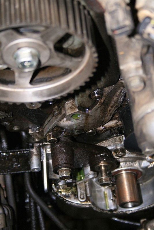 Вобщем началось все еще летом. Сначала это были небольшие капли масла под машиной после стоянки. Заметив, что интенсивнось течи масла растет отдал машину специалисту. Диагноз был поставлен быстро - течет коренной сальник. Под кожухами все было в масле, в т.ч. ремень ГРМ. Было решено менять все сальники, ролики (раз уж уже разобрали) и ремень ГРМ. Сказано сделано.