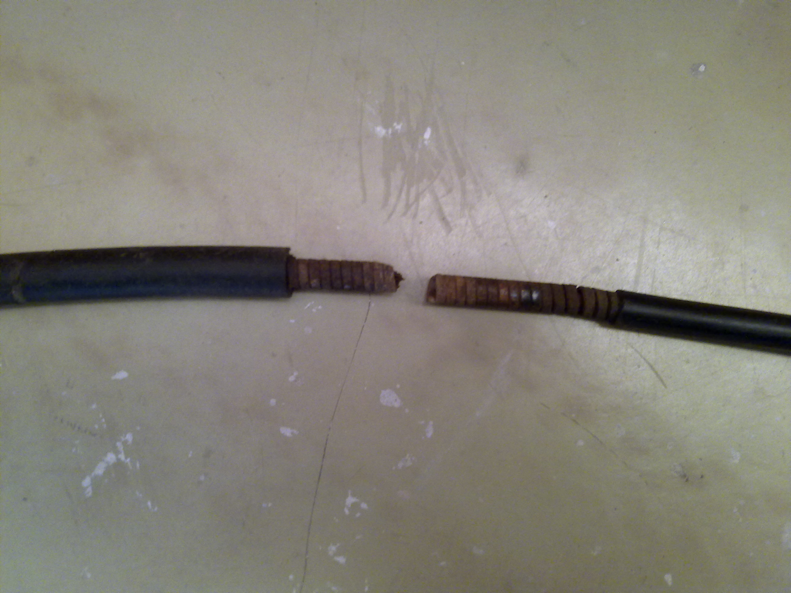 ситуация такая. взял машину с неработающим ручником. сейчас стал разбираться, залез под днище - оказалось, что трос левого заднего колеса порван. Причем порван как-то не логично. один конец порван по плоскости в которой измеряется диаметр, а второй как-то вкось и будто срезан чем-то острым. Трос я этот снял, отец друга рассказал что у него на машине была такая же ситуация, он снял его, почистил и скрепил оба конца холодной сваркой. Я не знаю, может тросы по структуре разные, но у меня скрепление холодной сварной выглядит не особо оптимистичным, думаю не приведет ни к чему хорошему. Строение троса такое: внутри под двумя плотными слоями защитной резины очень тугой слой металла закрученного по спирали как пружина и под ним - внутри - сам тросик. Резину я срезал примерно по 3-4 см с каждой стороны и при пробном наложении концы "пружины" не сходятся, плюс к этому, тросик внутри одного из концов сидит глубоко в пружине. И чтобы его достать нужно срезать эту самую пружину на 3 см по длине, примерно. Если всё же "заварить" сваркой - думаю - при общем затяжении ручника левое колесо будет тормозить больше чем правое...а это есть не очень хорошо. В общем - три вопроса. Можно ли как то это отремонтировать самому вручную? и если менять трос, то сколько он может стоить, и где лучше посмотреть(в плане стоимости)?