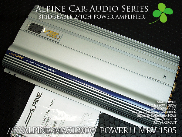 Сотв. сиглал-шум, частотка и остальные показатели на более высоком качественном уровне... Тут описание на 4-х канальник и тот что я выложил...1505... но если что у меня стоит сейчас и то и это...Мне ОЧЕНЬ нравится. ВЫХОДНАЯ МОЩНОСТЬ: 4 канала 160 Вт в стереорежиме. 2 канал 400 Вт мостовое включение. Номинальная мощность 4 канала 50 Вт. ЧАСТОТНЫЕ ХАРАКТЕРИСТИКИ: диапазон частот 10 Гц-50 кГц. Независимо регулируемые разделительные фильтры НЧ 50-400 Гц, ВЧ 1-8 кГц, 12 дБ/окт. ОСОБЕННОСТИ: чувствительность входа 0,2-4 В. Отношение сигнал/шум 105 дБ. Отдельный предусилитель с отдельным питанием. Заземление в одной точке. Выбор входного режима. Выбор прямого входа. Линейный выход без регулировок фейдера. Индикатор включения на верхней панели. Позолоченные контакты. ГАБАРИТЫ: 240х53х400 мм. КОНСТРУКЦИЯ: компания ALPINE - настоящий столп на рынке автомобильной акустики. MRV-F505 это лучший четырех канальный усилитель из новой серии названной V12. Эта серия выпущена компанией исключительно для любителей высококачественной музыки, в нее входят три четырехканальных усилителя, где MRV-F505 занимает лидирующую позицию, и четырех ???????? двухканальных усилителей, самый мощный из которых MRV-1505 может развивать при мостовом включении до 1500 ватт. Вся линейка моделей имеет сходную структуру корпуса, и различаются только размерами. Контакты у всех позолоченные и расположены с торца усилителя. Регулировка полосовых фильтров производится с верхней стороны усилителя. Есть в ассортименте ALPINE и более дешевая серия моделей под общим названием FLEX. Отличительная особенность этих усилителей - очень небольшая высота, всего три с половиной сантиметра, что позволяет расположить блок усилителей в салоне, где-нибудь под сиденьем - тем самым, сэкономив место в багажнике. А твой усилитель в Японии 製品名 :MRV-T407 発売時期 :2000年05月 標準小売価格 :¥26,040(税 - почти 300$!!! Сообщение отредактировал Rexat - 5.7.2013, 18:58 Спасибо! — sergeyart