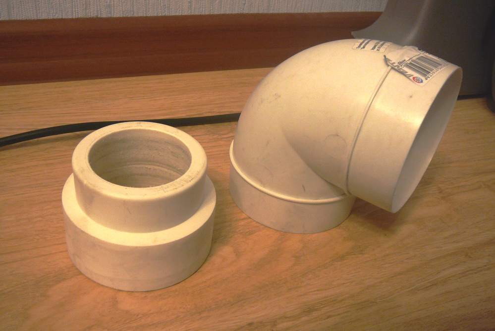 уголок надо сказать диаметром 100 мм, муфта полипропилен переходная 75 х 63 (внутренние)
