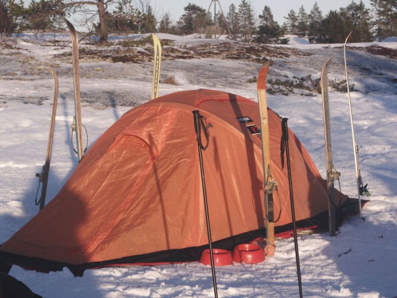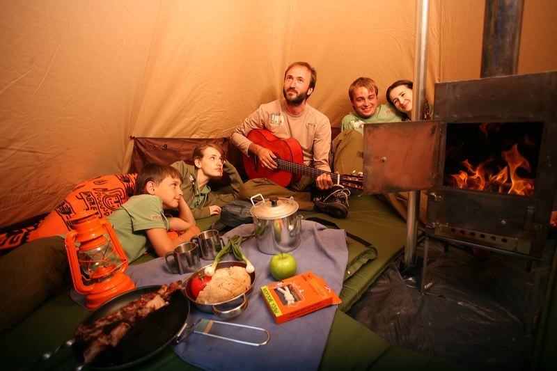 Итак одна из них: ссылка доступна только зарегистрированным Баск NORTH PEAK PRO 3 Палатка 3 местная для сложных погодных условий. Наиболее удачно подобранная компоновка, небольшая высота, аэродинамический профиль палатки существенно повышают ветроустойчивость. Четыре дуги каркаса из высококачественного алюминиевого сплава обеспечивают беспрецедентную прочность. Двойная с отдельным съёмным верхним пологом. Лёгкая и компактная. Цена в магазине: 12 765 руб. Отдам за 9 000р Второй ЧУМ ЭКСПЕДИЦИОННЫЙ ТЕХНИЧЕСКИЕ ПАРАМЕТРЫ НАЗНАЧЕНИЕ: экспедиции, лагеря, зимний туризм. КОЛИЧЕСТВО МЕСТ: 8. ГАБАРИТЫ, ДИАМЕТРxВЫСОТА: 440x273 см. МАТЕРИАЛЫ: 60% Polyester/40% Cotton, плотность – 270 г/кв. м. КАРКАС: алюминиевый сплав. ВЕС: 11,5 кг. ПОТРЕБИТЕЛЬСКИЙ АНАЛИЗ ОСОБЕННОСТИ КОНСТРУКЦИИ: однослойная палатка без дна конической формы. Конструкция настолько противоречит обычным представлениям о походном жилье, что производители даже предпочитают ее называть не палаткой, а чумом. Действительно, внешне палатка действительно похожа на традиционное жилище кочующих оленеводов. Только в отличие от настоящего чума, который ставится на пирамидальный каркас из связанных в верхней части жердей, «Чум экспедиционный» ставится на центральный кол и растягивается оттяжками, что намного уменьшает вес каркаса. Разборная центральная стойка изготовлена из алюминиевых трубок большого диаметра. Кстати, чтобы облегчить вес транспортируемого чума, центральную стойку можно оставить дома, а для установки «Чума» использовать прочную жердь. Чтобы отмерить нужную длину, удобно использовать мерный шнур, длина которого равна длине центральной стойки (268 см). Палатка изготовлена из смесовoй воздухопроницаемой ткани (60% Polyester/40% Cotton), плотность – 270 г/кв. м. В отличие от чистого капрона или лавсана, эта ткань не продувается, но при этом отлично дышит, так что дождика из конденсата можно не опасаться. Можно подумать, что это шаг назад, к брезентовым палаткам. Но все ли в них было плохо? Главный их минус – они впитывали воду, становясь неподъемными, и обмерзали. Но, во-первых, смесовая ткань впитывает гораздо меньше воды. А, во-вторых, в нижней части чума, а наиболее подвержена обледенению именно нижняя часть палатки, пришита штормовая юбка из лавсана (Polyester Oxford, W/R PU 1000 мм, 130 г/кв. м). Кроме того, смесовая ткань на боится искр и высокой температуры. Поэтому в чуме можно не только ставить печь, но и разводить костер. Более того, благодаря этому чум можно использовать не только в качестве жилья, но и для организации походной бани. Для выхода дыма вверху имеется регулируемое вентиляционное отверстие. Еще одно также регулируемое вентиляционное окно расположено внизу. ВЕТРОУСТОЙЧИВОСТЬ: хорошая. Благодаря обтекаемой форме, прочной ткани и большому количеству штормовых оттяжек чум устойчив даже к самым сильным штормовым ветрам. Основную ветровую нагрузку воспринимает прочная центральная стойка, которая нагружается не на изгиб, а только на сжатие. ВОДОНЕПРОНИЦАЕМОСТЬ: хотя ткань не имеет водонепроницаемого покрытия, а только водоотталкивающую пропитку (UNIDYNE TG410H W/R 1000 мм), выдерживающую 1000 мм водяного столба, чум практически непромокаем благодаря конусной форме – вода стекает по его поверхности, не задерживается и не образует лужи. Конечно, во время сильного дождя с ветром ткань промокнет, но за счет плотности и гиг