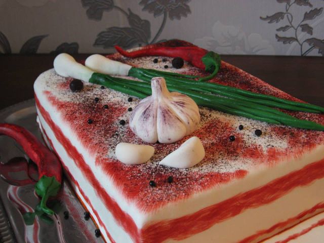 сало.большой кусок сала.а вообще именно так должен выглядеть торт киевский.